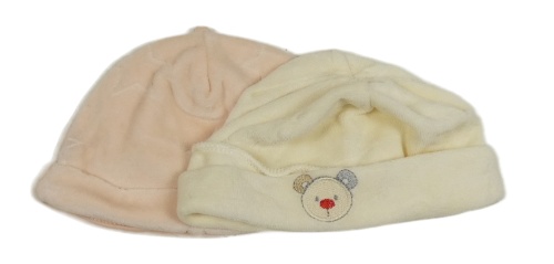 2x sametová čepice - svetloružová s hvězdami + smotanová s medvěďom
