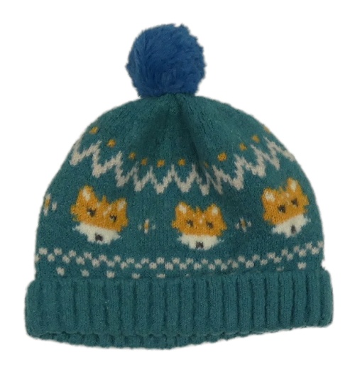 Zelená pletená vzorovaná čapica s liškami a brmbolcom