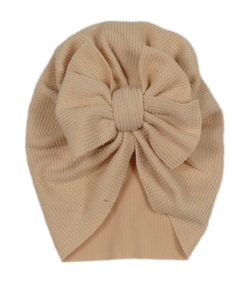 Svetloružová rebrovaná turbanová čapica s mašlou