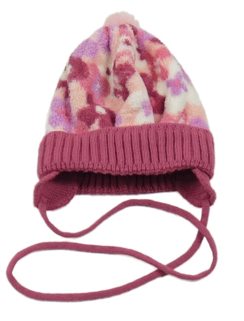 Ružovo-biela chlpatá čapica s kvietkami