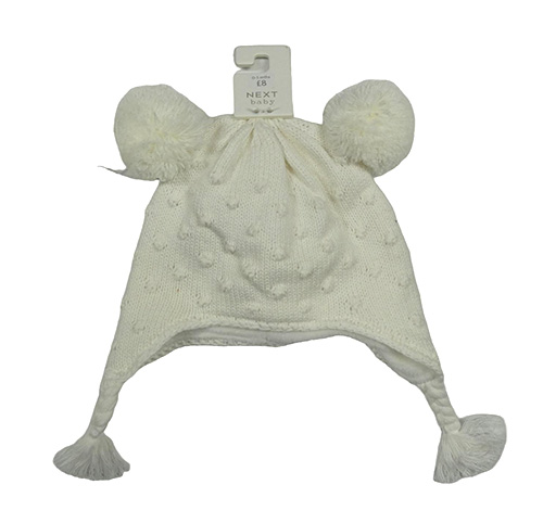 Nové - smotanová vzorovaná podšitá čapica s bambulemi