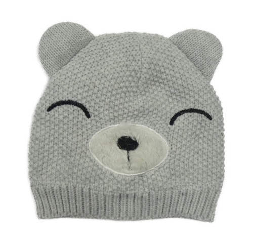 Sivá pletená zateplená čapica s medvedíkom
