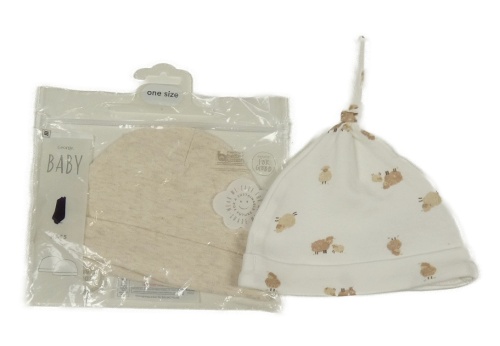 Nové - 2x - Čepice -Světlebéžová melírovaná George, bílá s George, bílá s ovečkami PRIMARK