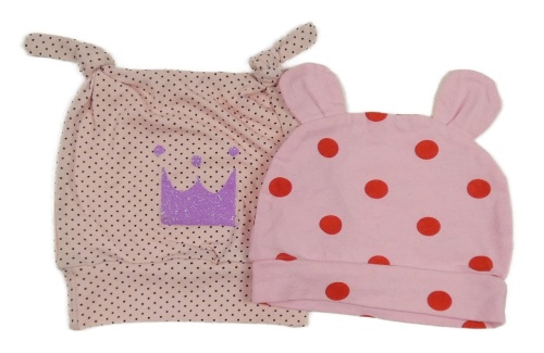 2x - Bodkovaná á čapica s oušky - Světlepudrová s korunkou, svetloružová