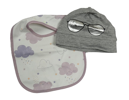 2set - Sivá melírovaná bavlnená čapica s brýlemi + biely podbradník s mraky