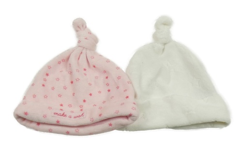 2x Biela + ružová hviezdičkovaná zamatová čapica