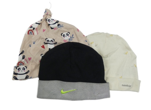 3x čepice - smetanová + ružová s pandami + čierna s logem - Nike