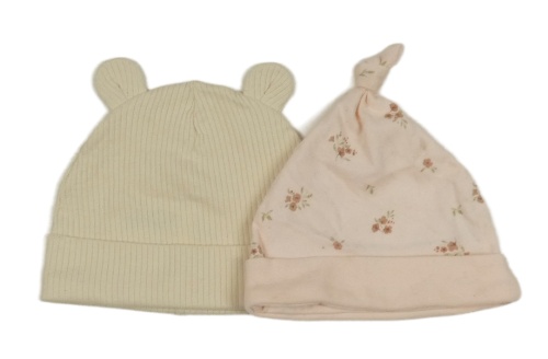 2x - Béžová rebrovaná + svetloružová čapica s kvietkami