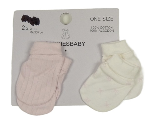 Nové - 2x - Světlerůžové + bílé bavlněné rukavice s mašličkami Dunnes