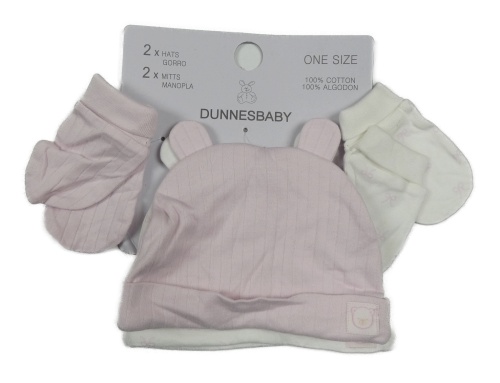 Nové - 4set - Růžová čepice + bílá čepice + bílé rukavice + růžové rukavice Dunnes