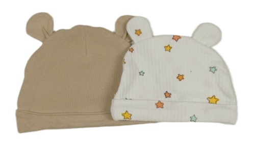 2x - Biela s hvězdičkami + béžová čapica s medvedíkom
