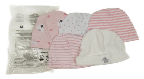 Nové - 5x bielo-ružová bavlnená čapica