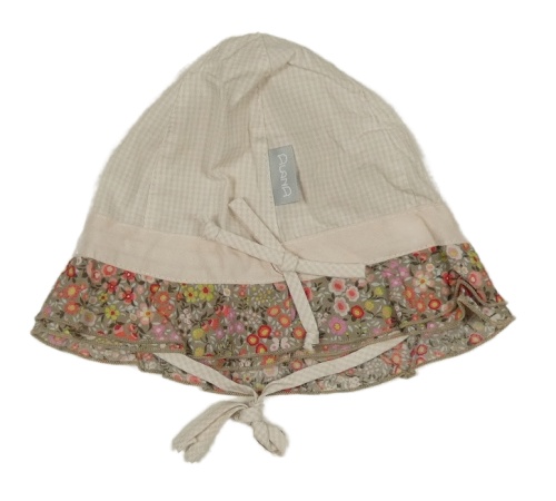 Béžovo-bílý kostkovaný plátěný klobouček s kvetmi Alana