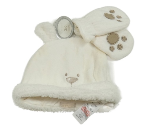 Nové - 2set - Smotanová zamatová čapica s medvědem + rukavice BHS