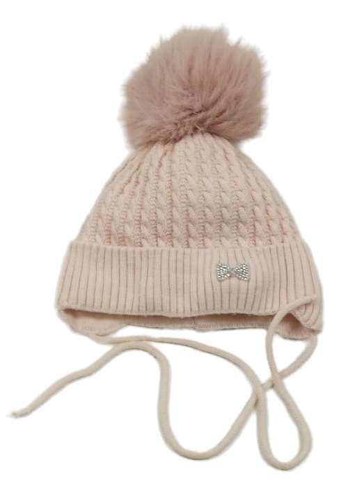Svetloružová čapica s mašlí z kamínků a brmbolcom