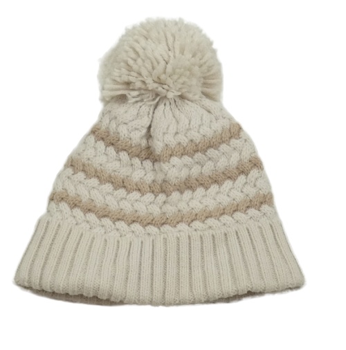Smetanovo-hnedá pruhovaná pletená podšitá čapica s brmbolcom Next