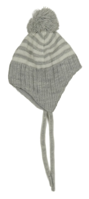 Šedo-bílá pruhovaná pletená podšitá ušanka s brmbolcom H&M
