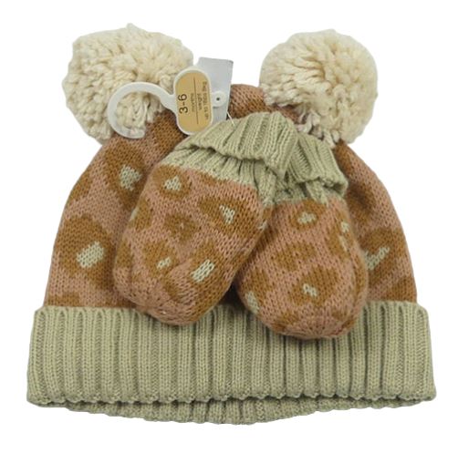 Nové - 2set - Staroružová vzorovaná čapica s bambulí + rukavice George