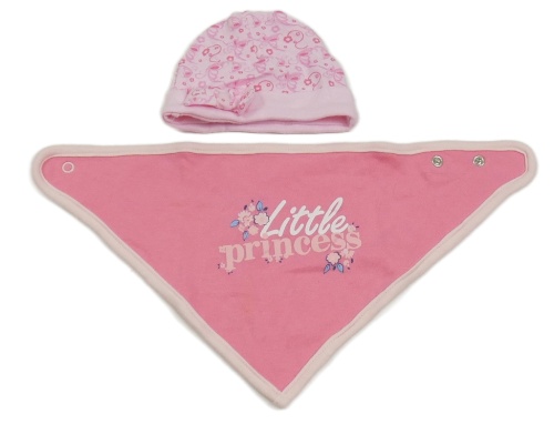 2set - Ružová kvetovaná bavlnená čapica s motýly a mašlí + slinták s kvetmi