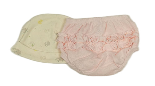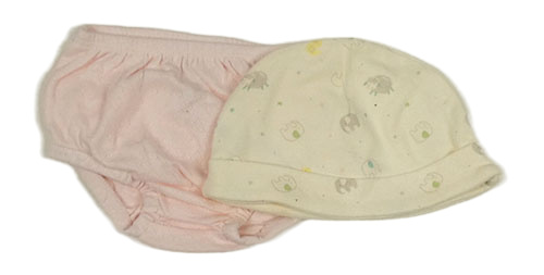 • 2Set - Smotanová čapica so zvířátky + světlerůžové kalhotky na plenky s perforovanými srdiečkami a kanýrkem a volánikom Matalan