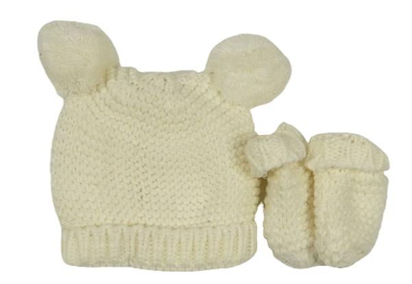 2set - Smotanová pletená čapica s bambulemi + rukavice