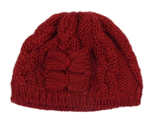 Vínová trblietavá pletená čapica s mašľami George