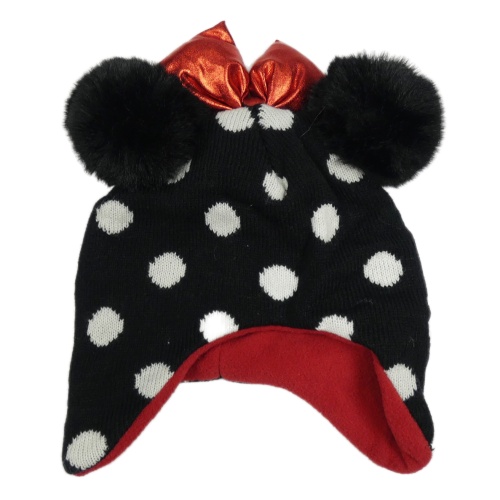 Nové - Čierno-biela bodkovaná pletená čapica s bambulkami Disney