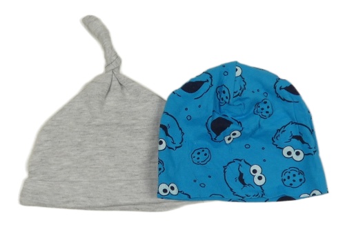 2x - Šedá + azurová bavlněná čepice Sesame Street