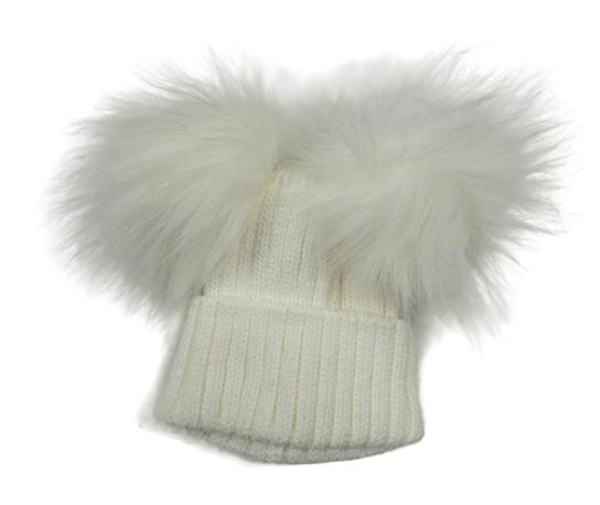 Biela rebrovaná pletená čapica s bambulemi