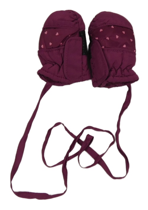 Tmavorůžové šusťákové palcové zimní rukavice so srdiečkami