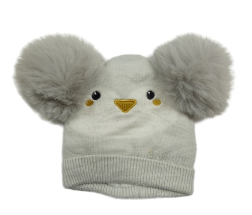 Svetlošedá -biela pletená čapica s bambulemi - tučňák George