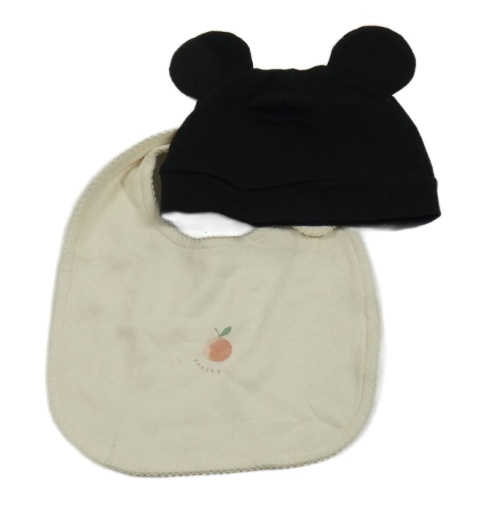 2set - Čierna bavlnená čapica s oušky + béžový slinták s broskví
