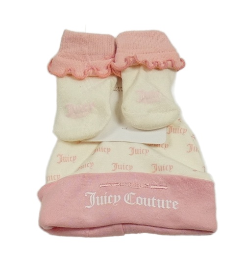 Nové - 2Set - Smetanovo-ružová čapica s logy + ponožky s volánikom Juicy Couture