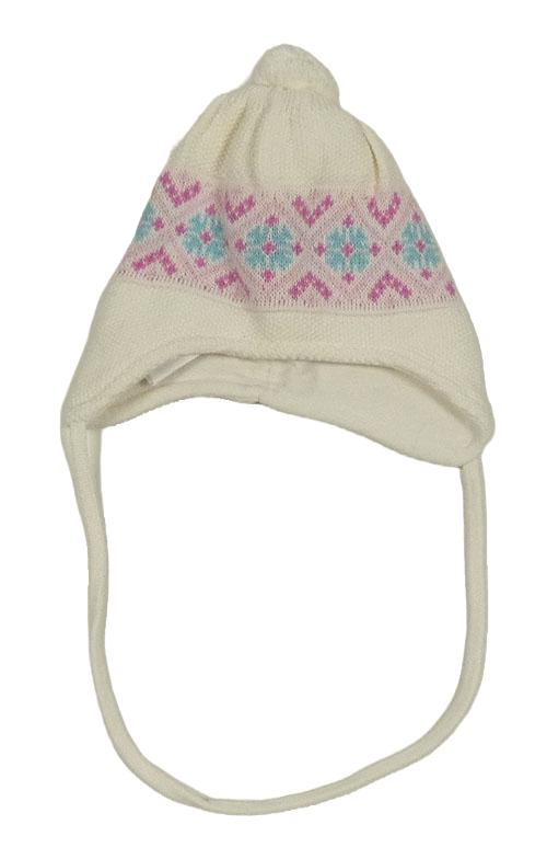 Smetanovo-ružová čapica so vzorom a brmbolcom