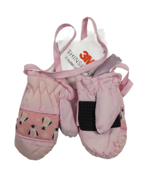 Nové - Růžové šusťákové zimní palcové funkční rukavice s tučňáky Dopodopo