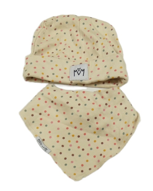 2set - Béžová puntíkatá bavlněná čepice + slinták