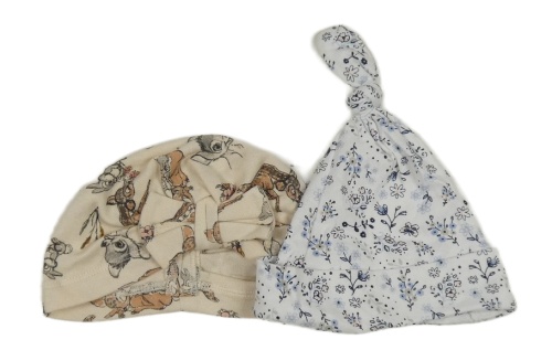 2x - Čepice - Světlepudrová s Bambim George, bílá s kytičkami a motýlky KYLE&DEENA