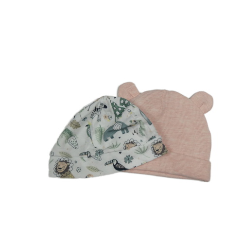 2x čepice - svetloružová s hvězdou + biela so zvířaty