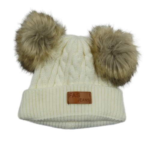 Smotanová čapica s nášivkou a bambulemi