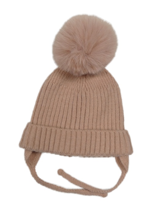 Svetloružová rebrovaná čapica s brmbolcom