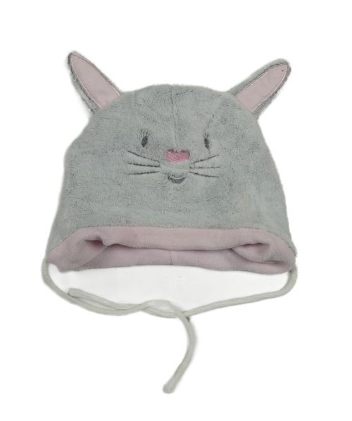 Sivo-svetloružová chlpatá čapica so zajačikom