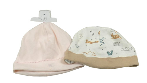 2x bavlněná čepice - světlerůžová + biela so zvířaty