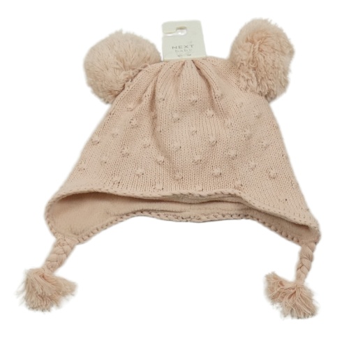 Nové - Ružová bodkovaná á pletená čapica s bambulemi Next