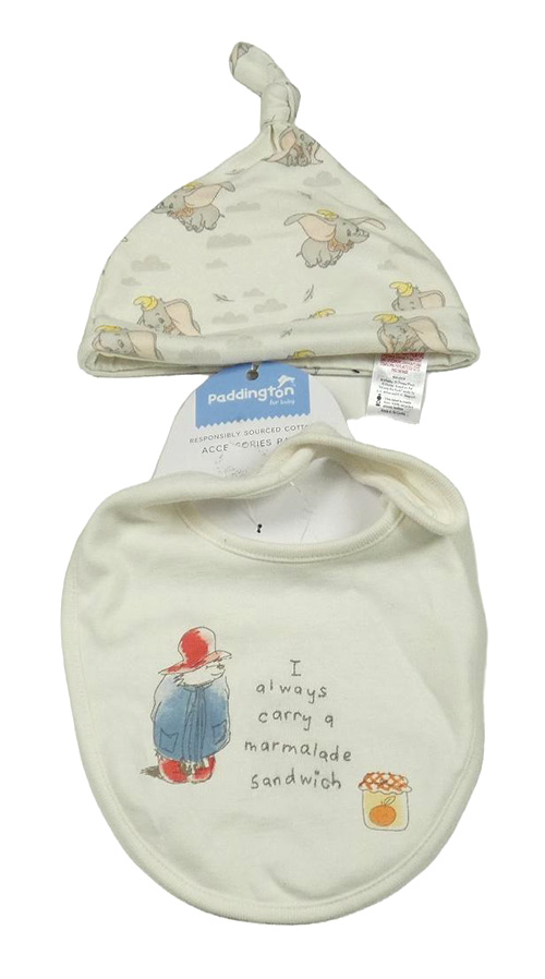 2set - Smotanová bavlnená čapica s Dumbem + slinták s Paddingtonem