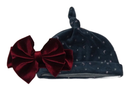 2set - Vínová zamatová čelenka s mašlí + zamatová čapica s hviezdami