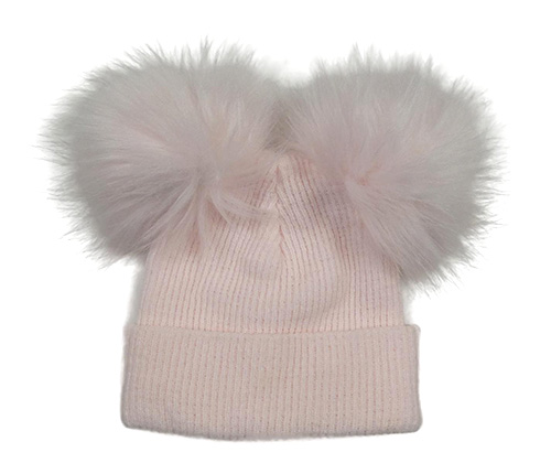 Svetloružová pletená čapica s bambulemi