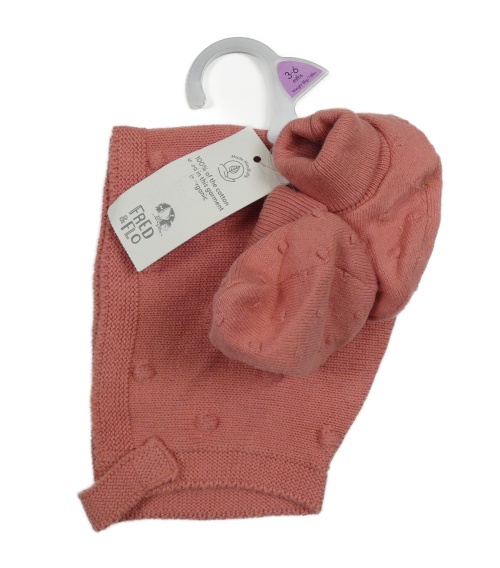 Nové - 2Set - Skořicová 3D puntíkatá čepice + bačkory vel. 16 F&F