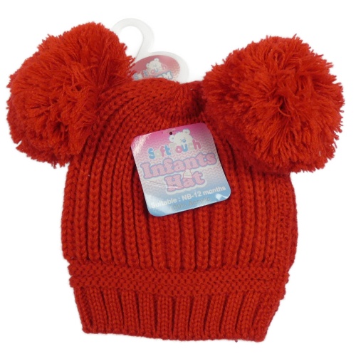 Nové - červená rebrovaná pletená čapica s bambulemi Soft Touch