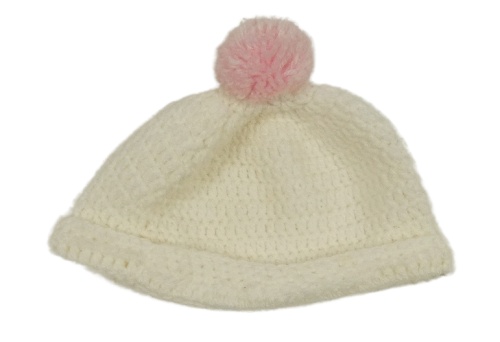 Smotanová pletená čapica s ružovou brmbolcom