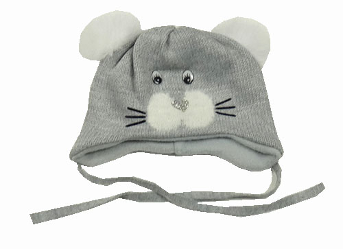 Sivá melírovaná vlnená čapica s ňufáčikom a bambulemi